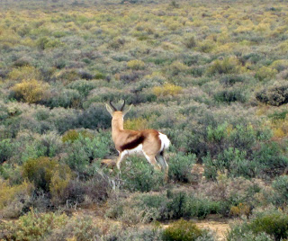 The springbok is a skittish creature, literally "springing" away from anything it deems remotely threatening, including, apparently, safari groups. Hence, we only captured shots of these graceful animals sprinting away from us. Alex informed us that this species has an incredible jumping capability; when threatened, they will lock their legs and channel their momentum earthbound, creating incredible thrust that allows them to leap over enemies.