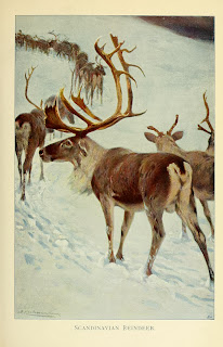 But sometimes the differences are significant enough to denote a classifiable distinction and today taxonomists recognize several subspecies of reindeer. For example, Rangifer tarandus groenlandicus, shown above, occurs primarily in Greenland. Even for those of us not well-versed in scientific names, this shouldn't be surprising with the obvious phonetic similarity between groenlandicus and Greenland. What many of us will find surprising, though, is that the common name of this subspecies is the "barren-ground caribou" meaning that, yes, caribou are subspecies of reindeer! Who knew? (Well, undoubtedly some of you did but for those of us more familiar with the animated variety, let us not be ashamed to admit we are duly surprised!)